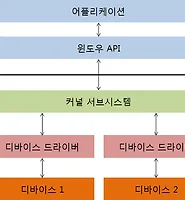 반대로 사용자 어플리케이션은 사용자 공간(user-space)에서 실행되어 장비의 가용 자원 중 일부만 사용 할 수 있으며, 특정 시스템 함수를 실행 할 수 있습니다. 그 외 하드웨어에 직접접근하거나, 커널이 할당한 영역 밖에 메모리에 접근하는 경우는 잘못된 동작입니다.