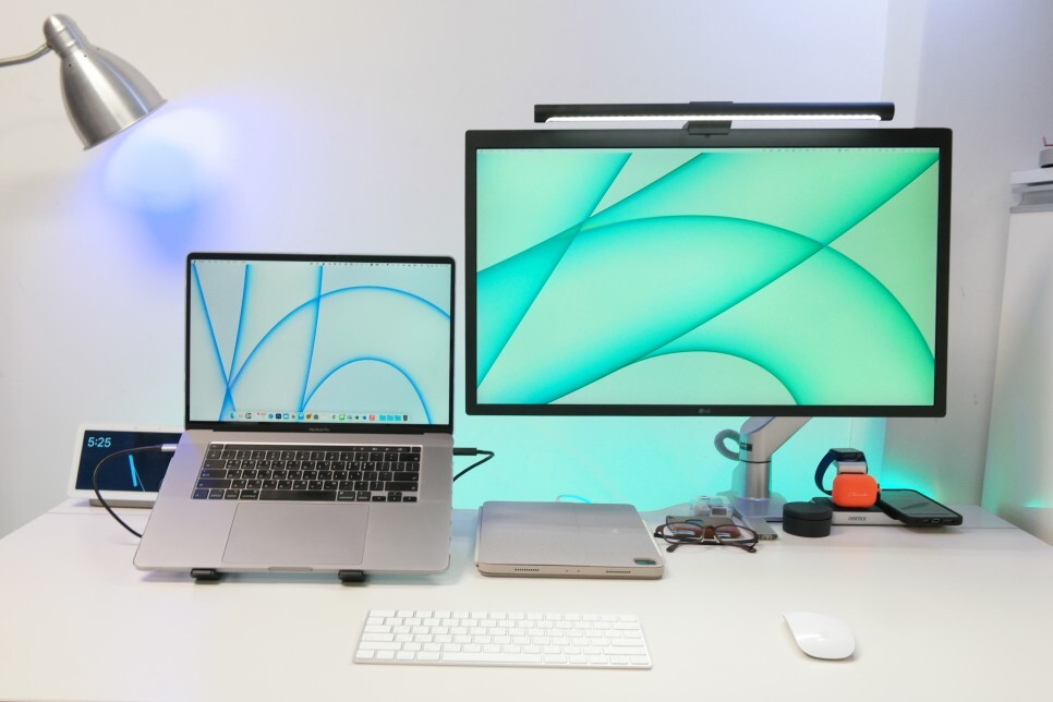 베라킷 유그린X-Kit멀티허브거치대에 맥북프로16인치와 외부 모니터로 듀얼 모니터로 구성을 해보았습니다.