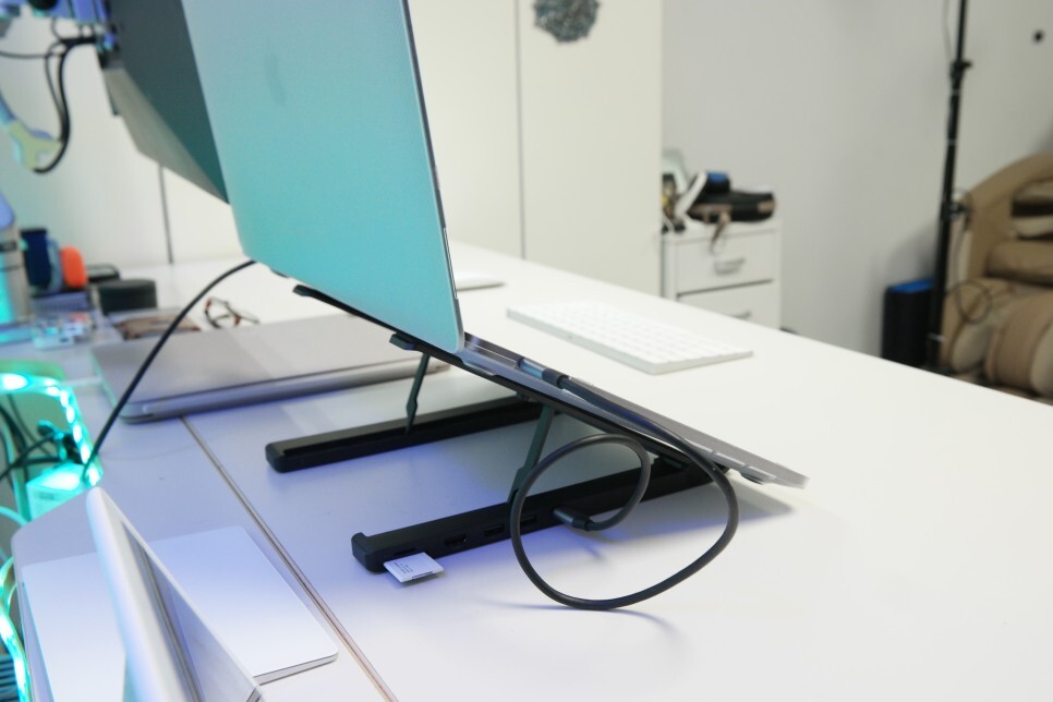 블로그 리뷰를 할 때는 사진을 바로바로 작업을 하기 때문에 거치대에 슬롯이 있으니 정말 편한 것 같아요. 맥북에서 SD 카드 슬롯이 사라지면서 상당히 불편했었는데, 거치대에 멀티허브가 있고, SD 카드 슬롯까지 있어서 매우 만족스럽습니다. 사용 할 때 조립을 하듯이 접었다 폈다하는 제품인데, 상당히 안정적인 것도 장점이라고 할 수 있습니다.