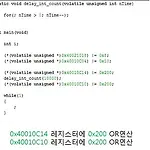 안녕하세요. 엘리트멤버 6기 수원멤버십 23-1기 조성찬입니다. 이번 시간엔 전시간에 이어서 LED를 OFF하는 과정과 Delay 함수에 대해서 간단히 알아 보도록 합시다.그럼 실제 소스 코드를 보도록 하겠습니다. 소스코드가 전시간에 비해서는 좀 더 길어지고 딜레이 함수가 추가적으로 구현이 되어서 들어가 있습니다. 여전히 직접 주소 접근 식으로 구성이 되어 있습니다. 구현된 소스코드와 delay 함수에 대해서 알아 봅시다.우선 이번에 새로 추가된 부분인 (* (volatile unsigned *) 0x40010C14) |= 0x200; (* (volatile unsigned *) 0x40010C10) |= 0x200;에 대해서 알아 보겠습니다. 레지스터 맵을 자세히 보시면 0x40010C10 과 0x40..